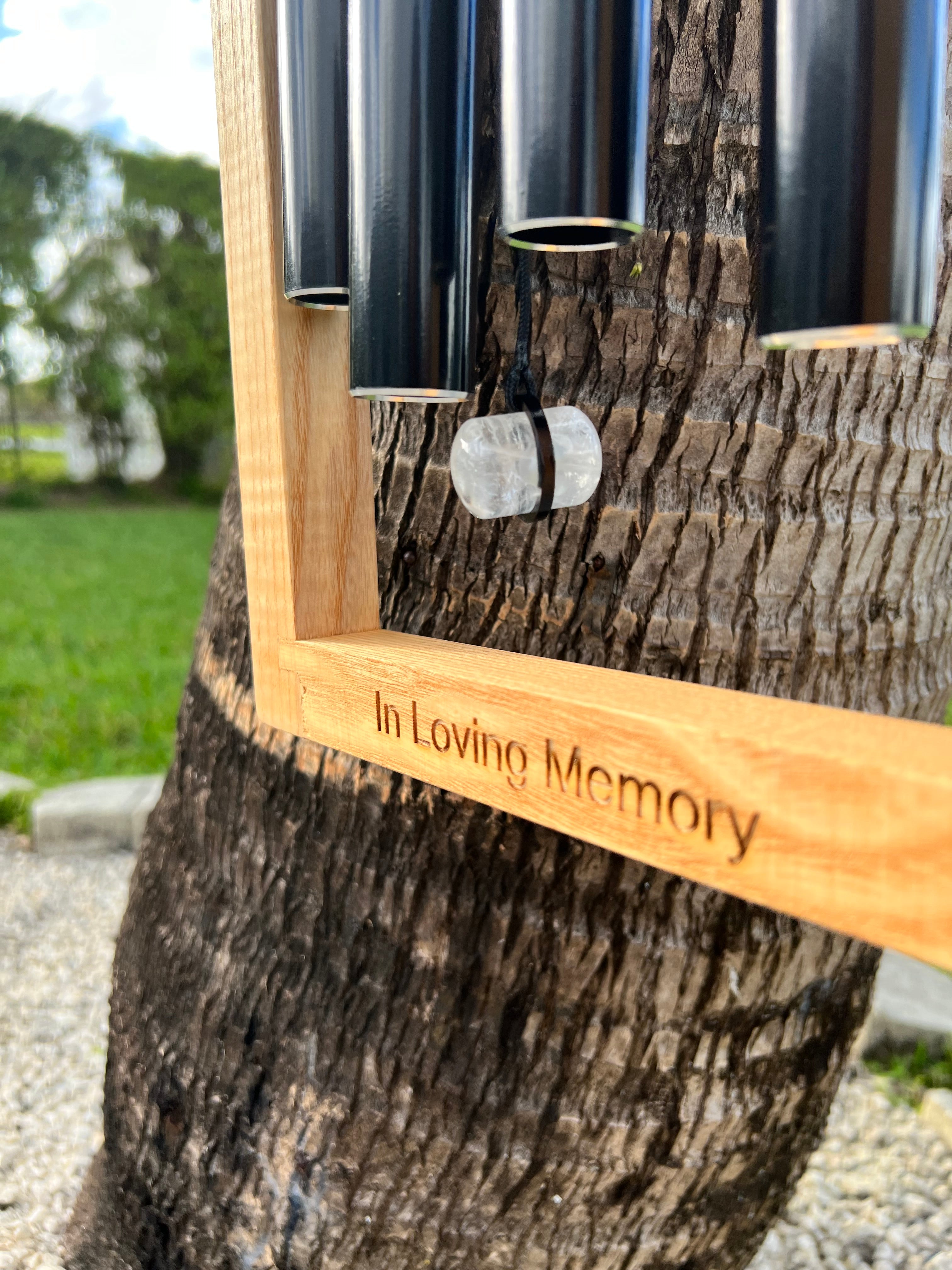 Customize your wind chime with a special message today! We offer five different fonts and a variety of options to make your wind chime the perfect addition to any home.